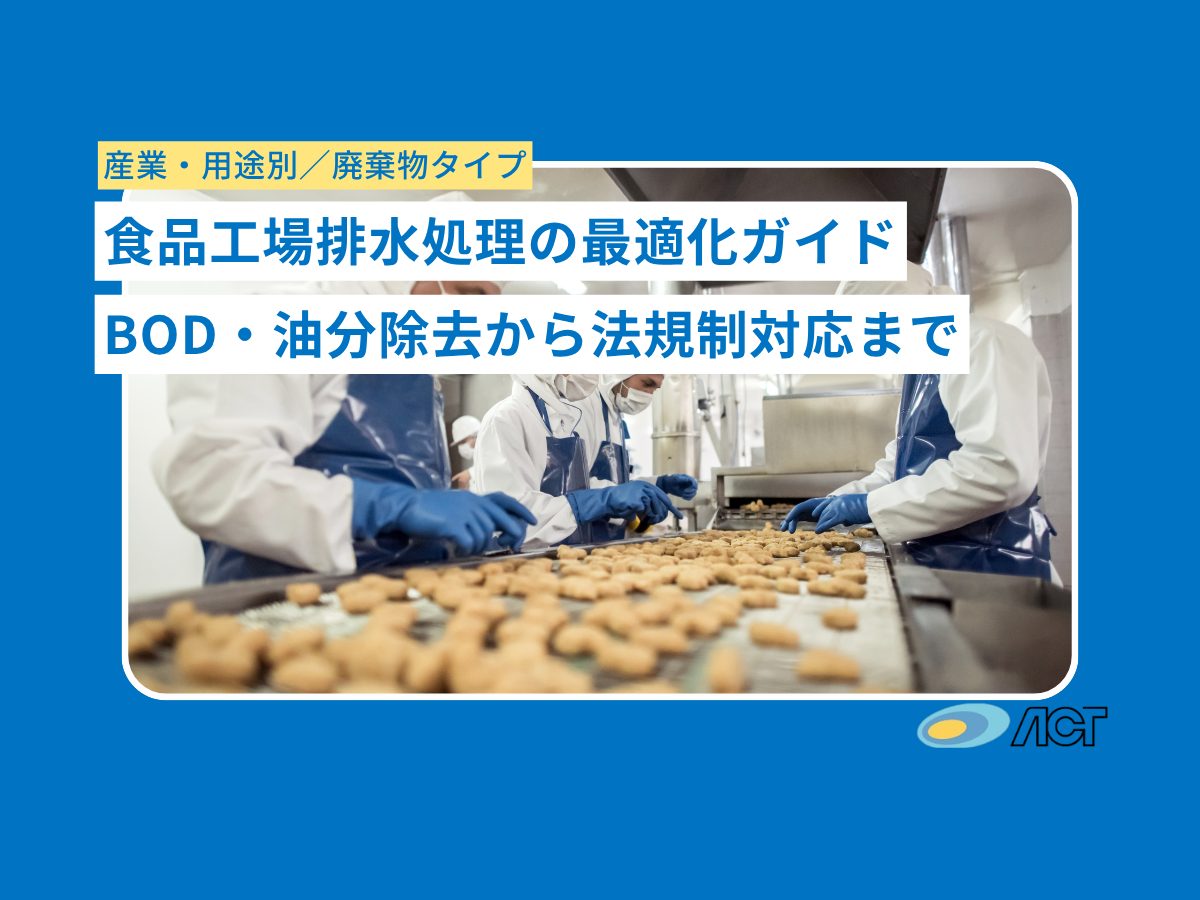 食品工場では、製造工程や清掃工程から大量の排水が発生します。食品工場排水は未処理のまま流せば環境汚染や公害につながるおそれがあり、日本では1970年に制定された水質汚濁防止法によりすべての工場排水は基準を満たさなければ環境中に放流できません。本ガイドでは、食品工場排水の特徴と課題から業種別の最適な処理システム、主要な処理技術の組み合わせ、HACCP対応の衛生管理、さらにコスト最適化のポイントと株式会社アクトの技術力・支援実績まで、包括的に解説します。食品工場や事業所で排水管理を担当されている方は、ぜひ排水処理の改善にお役立てください。